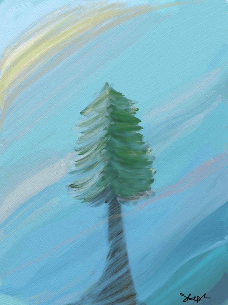August 1, 2011. Today’s post was inspired by the NaBloPoMo prompt, “What is your favourite book?” That would be a tie between two of Lorna Landvik’s books, “The Great Mysterious” and “The Tall Pine Polka.” As for the art, I’m still learning how to use the painting app ArtRage on my iPad. I was distracted as I painted this. I wished I was on my way to the great mysterious.