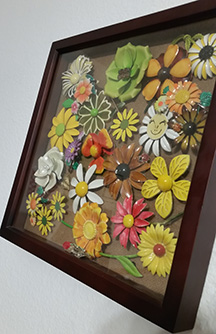 When I look at this bunch of lacquered metal flowers, I remember the many times that we spent combing sidewalk sales and thrift shops in San Francisco looking for some such funky find.