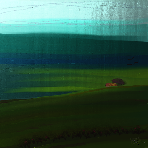 Monday, September 7, 2015 (Labor Day). My days are spent working. My dreams are spent by the water. I created this image and haiku this morning while day dreaming. I created the image using ArtRage 4.