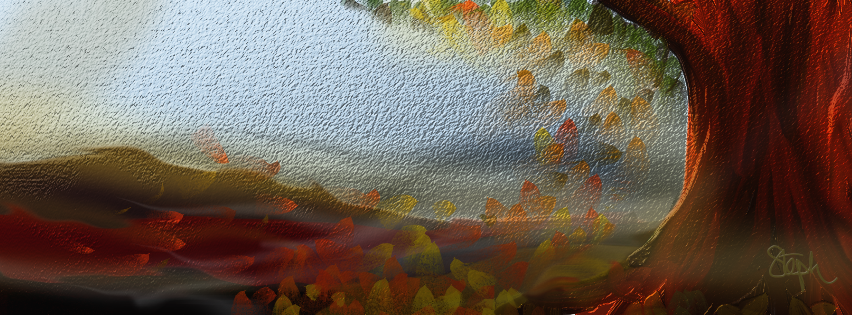Sunday, October 4, 2015. I wrote this haiku and created the image “Tree Fall” while listening to cellist Gautier Capucon play Antonín Dvořák – Cello Concerto in B minor, Op. 104, B. 191 (via YouTube at https://youtu.be/FVKb3DwPFA8). This movement reminds me of when the season starts to change from summer to fall (but summer doesn’t want to leave).